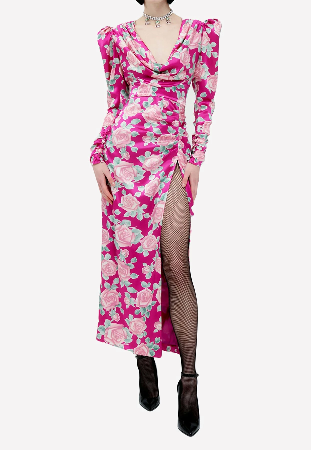 Be the first to review “Alessandra Rich Floral Print Maxi Silk Dress Fuchsia” Cancel reply