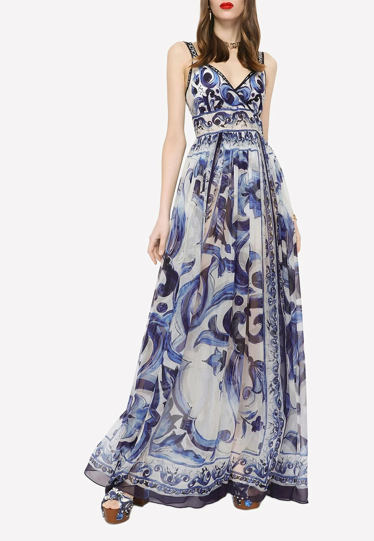 Be the first to review “Dolce & Gabbana Majolica Print Chiffon Maxi Dress Blue” Cancel reply